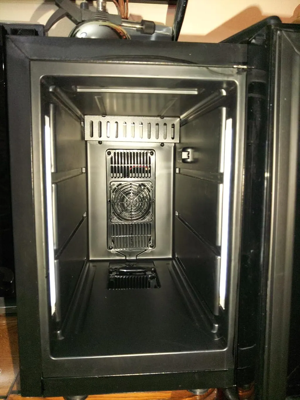 It does not require frequent maintenance. The 360° air cooling system is designed to prevent humid air buildup and maintain consistent temperature and humidity without manual intervention.